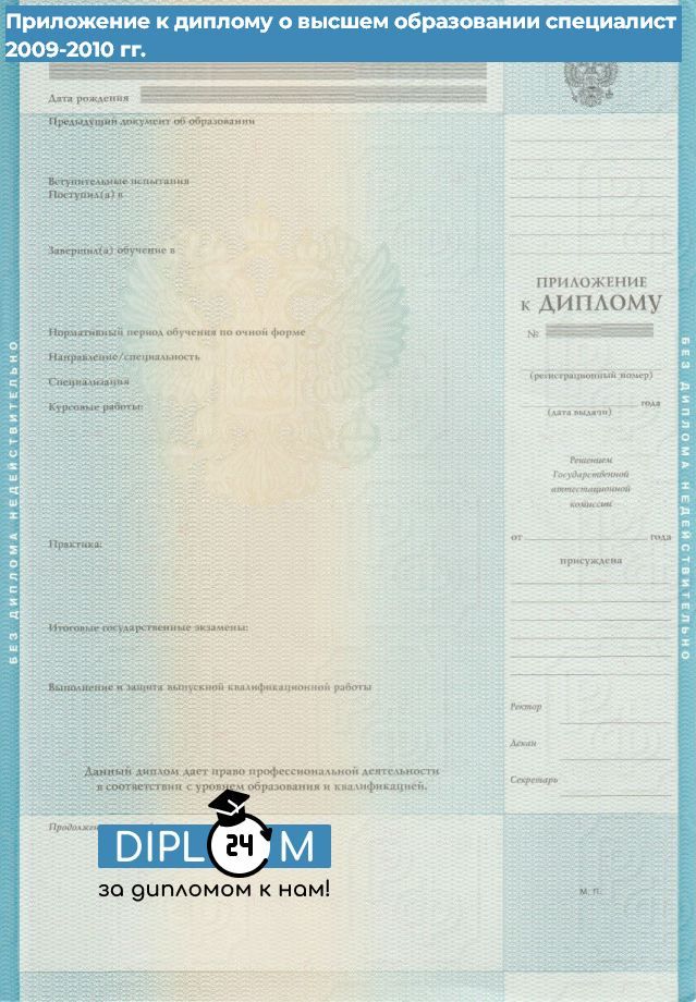 Диплом специалиста 2009, 2010 года